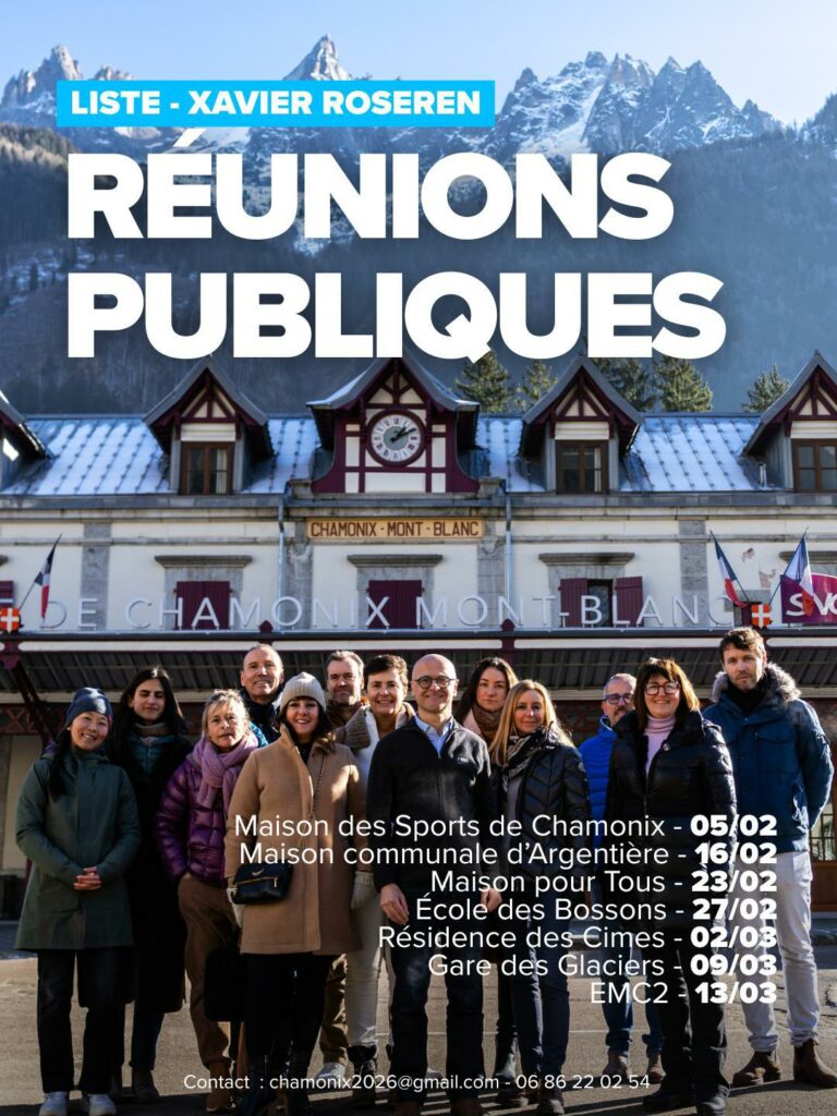 Dans le cadre des élections municipales de mars 2026, la liste “Unis pour Chamonix”, menée par Xavier Roseren, organise une série de réunions afin d’échanger avec les habitantes et habitants de Chamonix-Mont-Blanc.